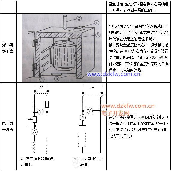 烘干的方法較靈活,主要有燈泡加熱法、烤箱干燥法、電流干燥法等,見表3-11。