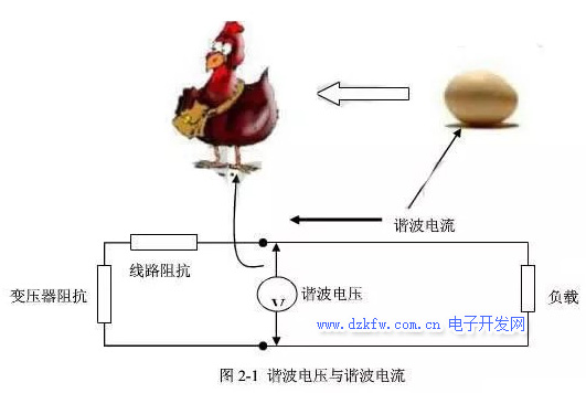 首先需要搞清楚諧波電壓與諧波電流的因果關系。諧波電流是非線性負載產生的,這些非線性負載從電源吸取非正弦波的電流,這些非正弦波電流中包含了諧波電流。諧波電流流過線路阻抗時,在線路的兩端產生了諧波電壓(歐姆定律),諧波電壓是由諧波電流產生的。打個比方,諧波電流是蛋,在一定條件下(線路存在阻抗),孵化出了諧波電壓這個雞,(困惑我們的可能還有先有蛋還是先有雞)如圖2-1所示如果特定的配電系統對于N次諧波電流的阻抗為Z­N,諧波電流IN在配電系統上產生的諧波電壓VN為:VN=IN*ZN式中:電網阻抗ZN包括了變壓器的阻抗和配電線的阻抗,如圖2-1: