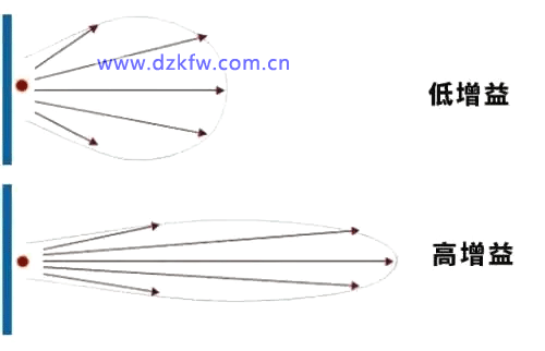 2、同等條件下,增益越高,方向性越好,電波傳播的距離越遠,即覆蓋的距離增加。但是波速寬度會別壓縮,波瓣越窄,從而導致覆蓋的均勻性變差。