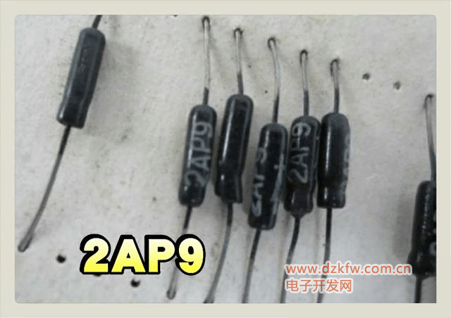 由于這種收音機(jī)所用的礦石檢波器現(xiàn)在已很難買到,若想制作這種收音機(jī),可以選用晶體管收音機(jī)里常用的2AP9鍺檢波二極管來(lái)代替礦石。該檢波管的外形如上圖所示,其為點(diǎn)接觸型鍺二極管,具有較小的正向壓降,并且高頻性能良好,最高工作頻率可達(dá)100MHz。