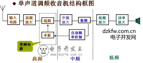 調頻收音機依電路程式來分,可分為直接放大和超外差式兩種;依接收信號和種類來分,有單聲道調頻收音機和調頻立體聲收音機(見圖2、圖3)。