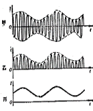 右圖是調幅裝置的示意圖.接在振蕩器和線圈之間的話筒就是一個最簡單的調制器,由聲源發出的聲音振動使話筒里的碳粒發生時松時緊的變化,它的電阻也發生時大時小的變化。所以,雖然振蕩器產生的是高頻等幅振蕩電流,但是線圈通過的卻是隨聲音而改變的高頻調幅電流.由于線圈的互感作用,從開放電路中發射的也是這種高頻調幅電流。這種電磁波叫調幅波。