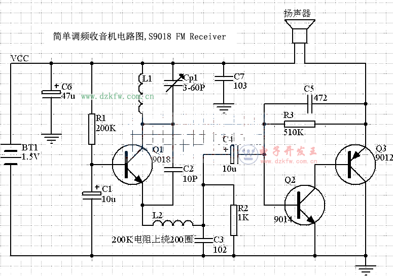 簡單調頻收音機電路圖,S9018 FM Receiver