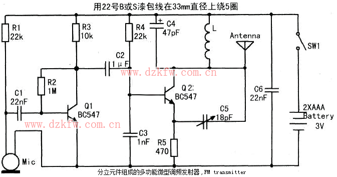 分立元件組成的多功能微型調(diào)頻發(fā)射器,FM transmitter