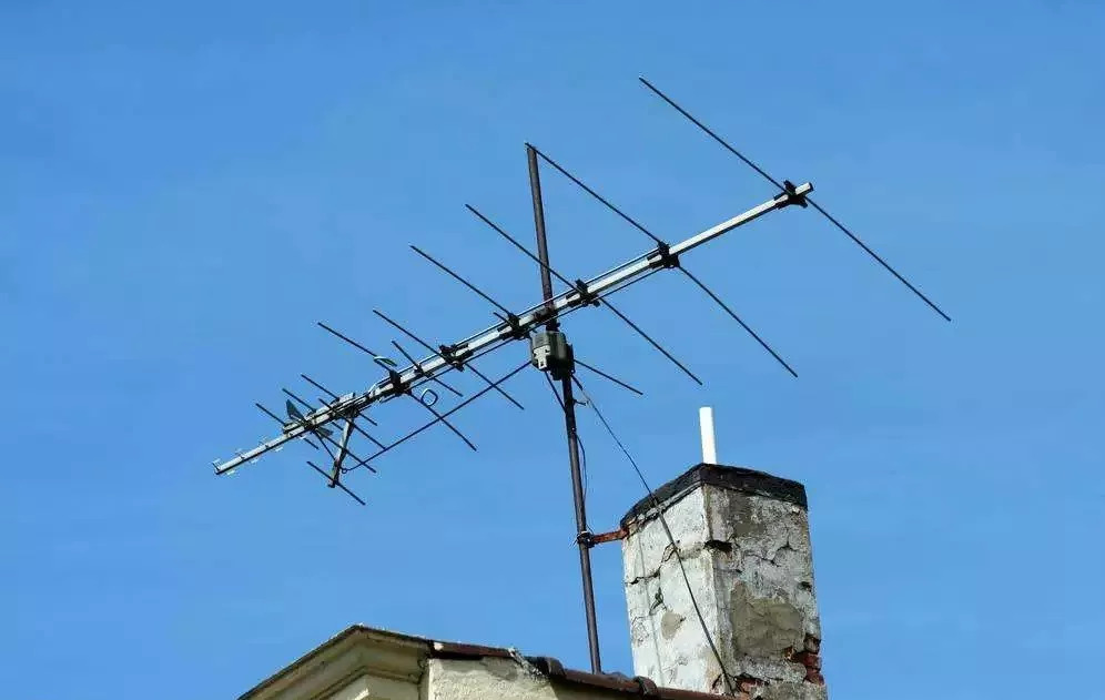 下圖中的這種天線很多人應該見過,在以前主要架在屋頂上,用于電視信號的接收(電視自帶的鞭狀天線實在是能力有限)。這種魚骨狀的天線就叫八木天線。