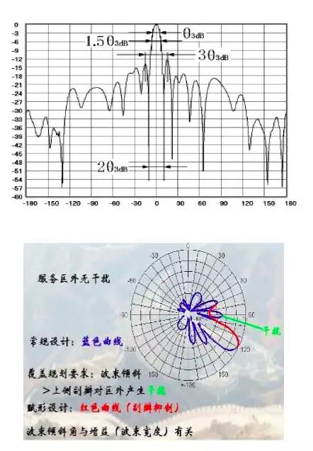 每個扇區的天線在最大輻射方向偏離±60º時到達覆蓋邊緣,需要切換到相鄰扇區工作。在±60º的切換角域,方向圖電平應該有一個合理的下降。電平下降太多時,在切換角域附近容易引起覆蓋盲區掉話;電平下降太少時,在切換角域附近覆蓋產生重疊,導致相鄰扇區干擾增加。