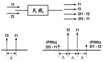 互調干擾的必要條件:足夠強的互調信號電平+能夠落入到系統接收頻帶