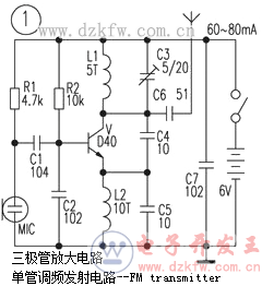 關鍵字:單管調頻發射電路,調頻發射,調頻發射電路,三極管放大電路