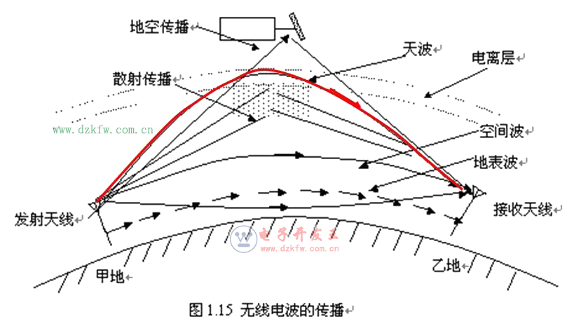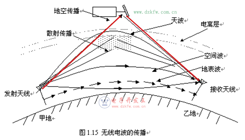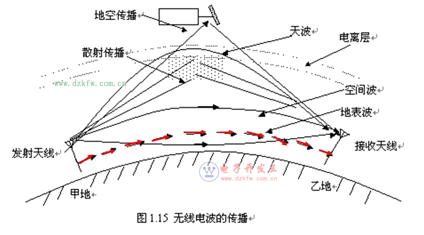 (1)地波傳播:無線電波沿著地球表面傳播,稱為地波傳播,也稱地表波傳播。