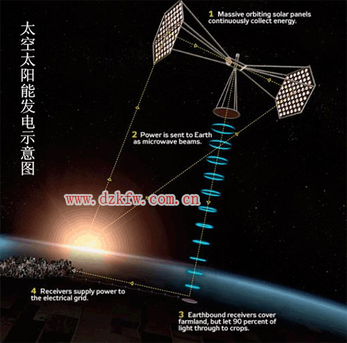 宇宙光伏發電系統,是將太陽能電池板發射到3萬6000km高的宇宙空間,將其在靜止軌道上所發電力,以微波或激光無線傳送到地面,在地面上再轉換為電力使用的系統。