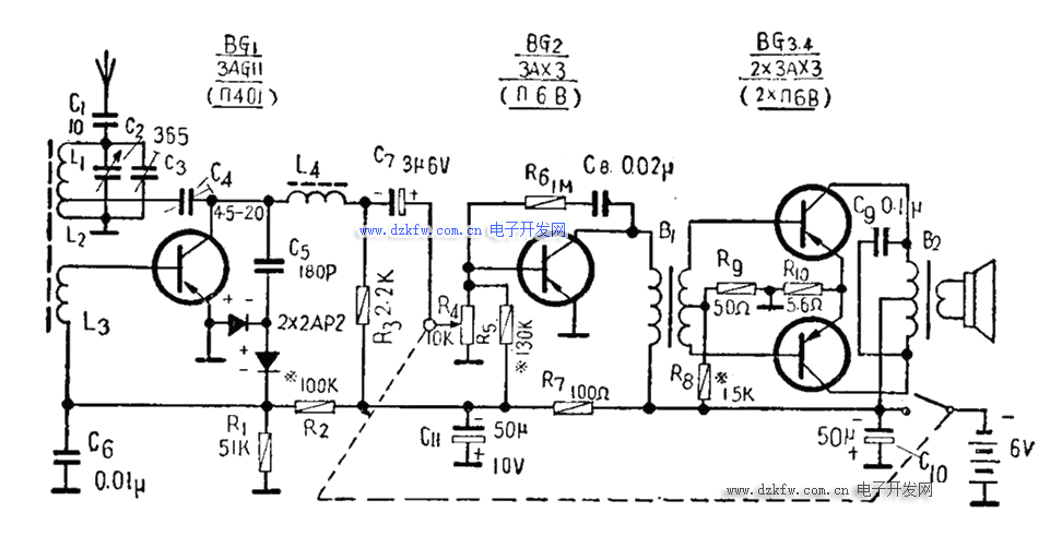 四晶體管收音機(jī)電路圖