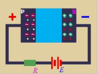 外加的正向電壓有一部分降落在PN結(jié)區(qū),方向與PN結(jié)內(nèi)電場方向相反,削弱了內(nèi)電場。于是,內(nèi)電場對多子擴(kuò)散運(yùn)動的阻礙減弱,擴(kuò)散電流加大。擴(kuò)散電流遠(yuǎn)大于漂移電流,可忽略漂移電流的影響,PN結(jié)呈現(xiàn)低阻性。