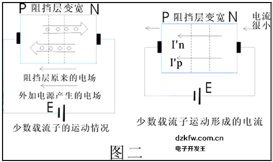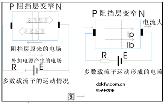 如圖一。外加電源的正極接P區,負極接N區,這便是給P結加正向電壓,PN結的這種運用狀態稱為正向運用。