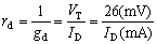 例如,當Q點上的ID=2mA時,rd=26mV/2mV=13W。