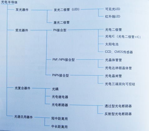 我們將使用半導體,將電氣信號變換為光信號或反過來將光信號變換為電氣信號的器件叫做光電半導體。光電半導體有各種種類。按照功能、動作原理、結構、用途分類,主要的光電半導體可以分為以下幾類。