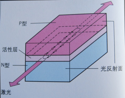 激光半導體(LD與LED不同,不是由注入的少數載子簡單地重新結合起來,而是由于光的刺激而再結合起來,發出相位一致的光來)。    而且,芯片的一對端面呈鏡面狀,由激光共振器構成。光在該共振器內往返的過程中放大后,取出到芯片外部。