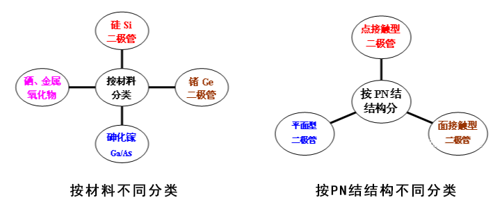 當(dāng)外加電壓方向由P極指向N極時(shí),導(dǎo)通。 晶體二極管分類 晶體二極管可按材料不同和PN結(jié)結(jié)構(gòu)不同,進(jìn)行分類。