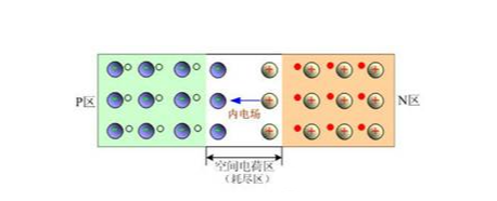 由P型半導(dǎo)體和N型半導(dǎo)體相接觸時(shí),就產(chǎn)生一個(gè)獨(dú)特的PN結(jié)界面,在界面的兩側(cè)形成空間電荷層,構(gòu)成自建電場(chǎng)。