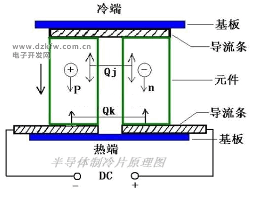 外加的正向電壓有一部分降落在PN結區,方向與PN結內電場方向相反,削弱了內電場。于是,內電場對多子擴散運動的阻礙減弱,擴散電流加大。擴散電流遠大于漂移電流,可忽略漂移電流的影響。而實際上電子在通過電場后勢能產生變化,能量轉換為各種形勢的表現,而熱量的吸收與散發都是其表現的一個方面。而半導體制冷片的工作原理實際上就是通過定向電流將熱能定向搬運的過程。