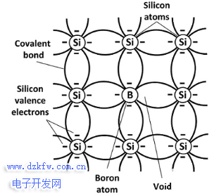 Si半導體是四價元素,晶體的共同結構包括來自4個外層電子的4個共價鍵。在Si中,III族和V族元素是最常見的摻雜劑。III族元素包括3個外部電子,當用于摻雜Si時,它們的作用類似于受體。