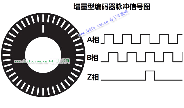 這樣,增量型編碼器A相/B相/Z相的輸出信號如下圖所示:
