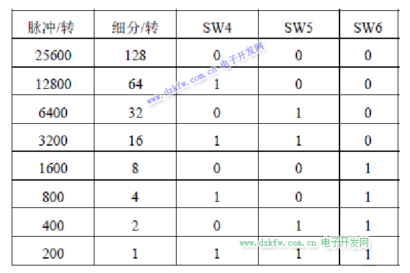 動態電流設定:能夠允許的 最大電流,峰值電流.根據步進驅動器正面表格,設定電流和細分精度,其中SW3為半/全模式設定:此項設定若設定為ON,可理解為在無脈沖情況下驅動器輸出電流自動降為額定輸出電流以下大約70%,防止電機發熱。