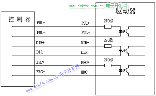 2.控制信號采用差分接線方式時,接線圖如下圖所示: