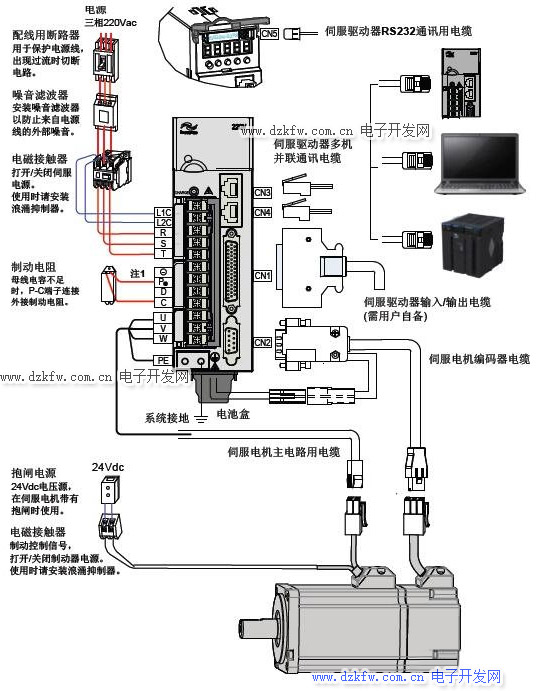 伺服驅動器參數端口和伺服電機接線圖如下: