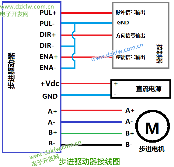 步進電機驅動器的接線非常簡單,只需要按照驅動器的接線圖進行接線即可。