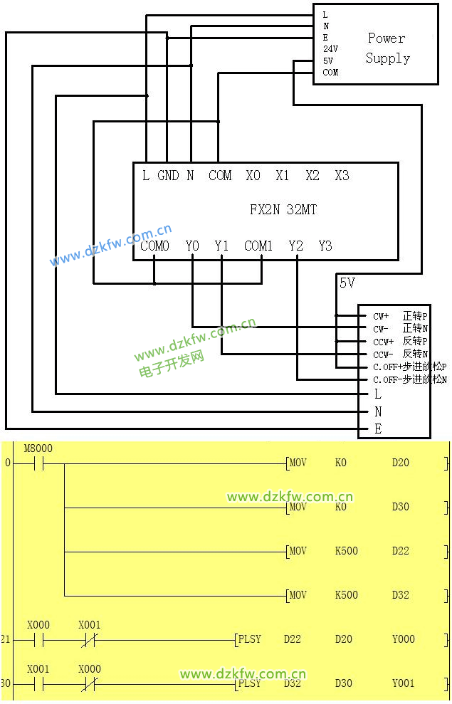 2,至于接線圖,你要知道FX2N的PLC最多發兩路脈沖,脈沖口為Y0和Y1,頻率為20KHZ。