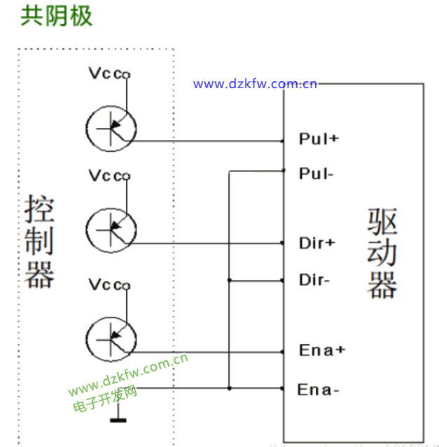日系PLC(歐姆龍、倍福等)輸出Q點是低電平,因此接步進驅動器的PUL-/DIR-,步進驅動器的PUL+/DIR+共陽極,接24V。