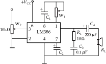 W1調(diào)增益,R8、C3與相位補償,防自激;C2為電源退耦電容;C4為輸出耦合電容;W2控制輸入信號的大小。C1、C2可取10μF。