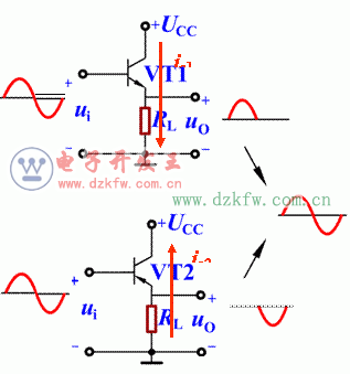 工作原理:當輸入信號 ui = 0 時,兩管均不導通,無電流流過負載,輸出電壓 uo = 0。