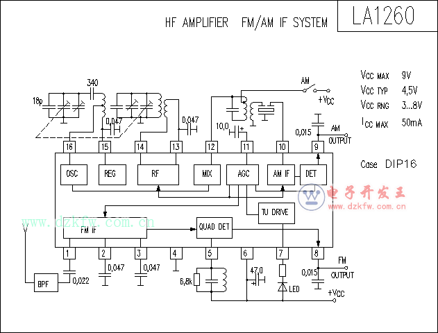 LA1260應用電路實例:音響IC電路圖