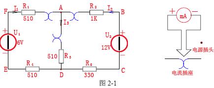 利用實驗掛箱上的“基爾霍夫定律/疊加原理”線路,按圖2-1 接線。