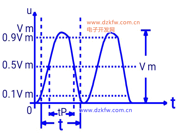 ⑤下降沿時(shí)間tf:脈沖從幅值的90%處下降到幅值的10%處所需的時(shí)間。