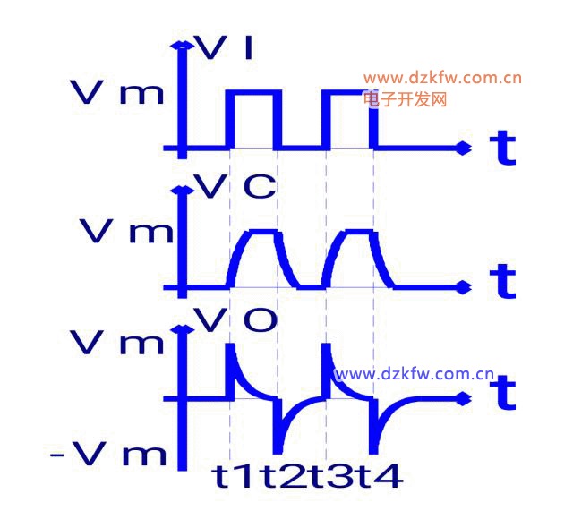 把矩形波變換為正負(fù)相間的尖峰波。