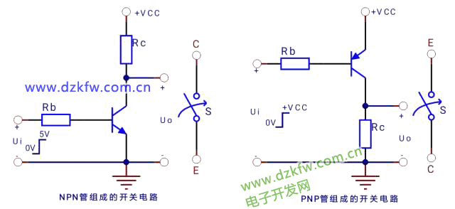 以NPN管組成的開關(guān)電路工作原理: