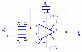為了減小輸入偏置電流引起的運算誤差,在同相輸入端應接入平衡電阻R2=R1||RF。