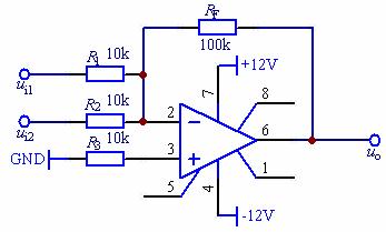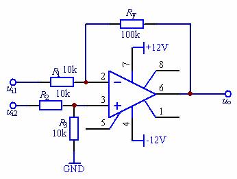 對于圖5所示的減法運算電路,當R1=R2,R3=RF時,有如下關系式
