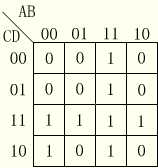 圖2.7 函數F(A,B,C,D)=AB+CD+A·BC的卡諾圖