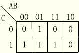 圖2.6 函數F(A,B,C)=∑m(1,2,3,7)的卡諾圖
