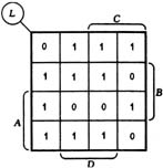 圖1 L(A,B,C,D)的卡諾圖 |