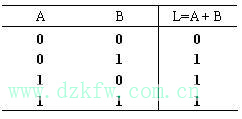 圖2(a)表示一簡單的或邏輯電路,電壓V通過開關A或B向燈泡供電。只要開關A或B接通或二者均接通,則燈L亮;而當A和B均不通時,則燈L不亮,其真值表如圖2(b)所示。由此可總結出或運算邏輯關系。