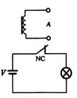 如圖3(a)所示,電壓V通過一繼電器觸點向燈泡供電,NC為繼電器A的常閉觸點,當A不通電時,燈L亮;而當A通電時,燈L不亮。其真值表如圖3(b)所示。由此可總結出非運算邏輯關系。