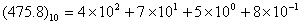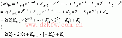 有0,1,2,…,9等十個數碼元素,任何一個大小的數字都由這十個元素組成。例如(475.8)10或(475.8)D,這個十進制數可以寫成。它表明:進制數為10(即r=10),高低位之間關系為逢十進一,高位至低位的權值為:。因此有通式:。式中n是該數整數部分的位數,m是小數部分的位數, Ki是i位的數碼,r是表示任意進制時的基數,如二進制數、八進制數和十六進制數等。