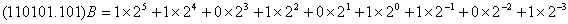 有0,1二個數碼元素,基數r=2,逢二進一,如:(110101.101)2或(110101.101)B,寫成通式展開后為:。高位至低位的權值為: