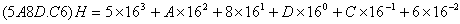 有0,1,2,…,9,A,B,C,D,E,F等十六個數碼元素,基數r=16,逢十六進一,如:(5A8D.C6) 16或(5A8D.C6) H,寫成通式展開后為: