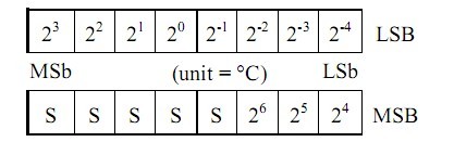 左邊的圖描述了輸出數據的格式,在這里使用12bit,如果想設置為更低位解決方案,可以在空位處補零。如果采用華氏溫度顯示,則需要查找表或者是查找路徑。