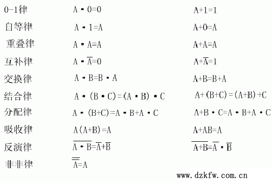 已知一邏輯函數F,求其反函數時,只要將原函數F中所有的原變量變為反變量,反變量變為原變量;“+”變為“·”,“·”變為“+”;“0”變為“1”;“1”變為“0”。這就是邏輯函數的反演規則。